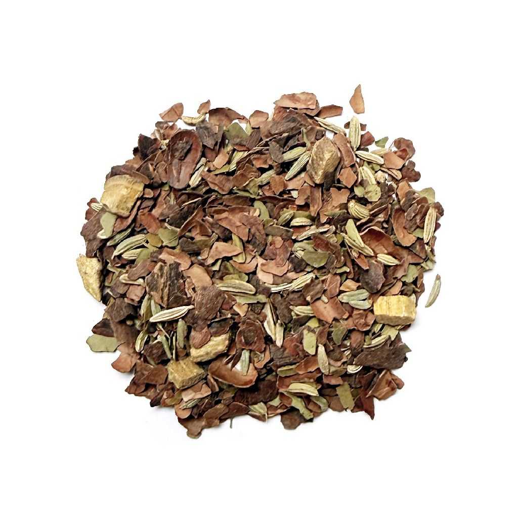 Ecorce de fève de cacao*, réglisse*, fenouil*, maté*